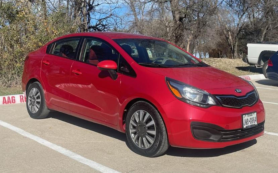 he 2015 Kia Rio's only engine is a 1.6-liter I-4 rated at 138 hp and 123 lb-ft of torque that's mated to a six-speed automatic transmission. Fuel economy is good for the class at 27/37 mpg city/highway for all models. An available Eco Package for the EX grade improves gas mileage to 28/37 mpg. Space for passengers and cargo is ample. Material quality, is mixed with many hard plastics mixed with some soft-touch materials. Kia's user-friendly infotainment system keeps you entertained on the road. The 2015 Kia Rio has a four-star overall safety rating from the NHTSA (out of a possible five stars)